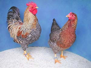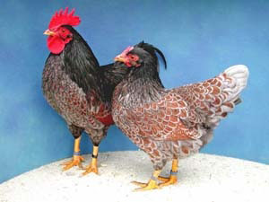braun-schwarz-doppeltgesäumt Diese schöne Zwienutzrasse mit guter Fleisch- und Eierleistung gehört zu den bedrohten Nutztierrassen und ist auf der Roten Liste zu finden. Neue Züchter sind sehr erwünscht! |